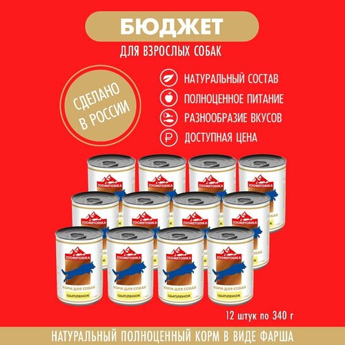 ZOOMETODIKA бюджет консервированный корм для взрослых собак с цыплёнком 12 штук по 340 граммов