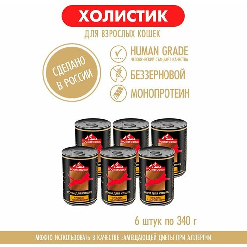 Полноценный консервированный корм для кошек ZOOMETODIKA холистик говядина 6 банок по 340 граммов