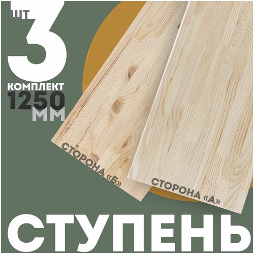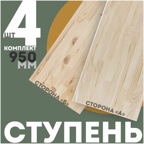 Ступень прямая, для лестницы, деревянная, массив сосны, двусторонняя, сорт "А" и сорт "Б"