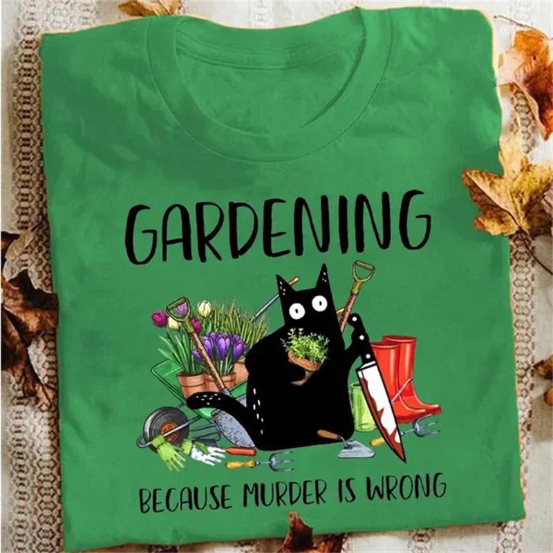 Летние женские модные футболки Забавное садоводство, потому что убийство - это плохо Футболка с графикой черного кота Винтажная женская футболка Женская рубашка S