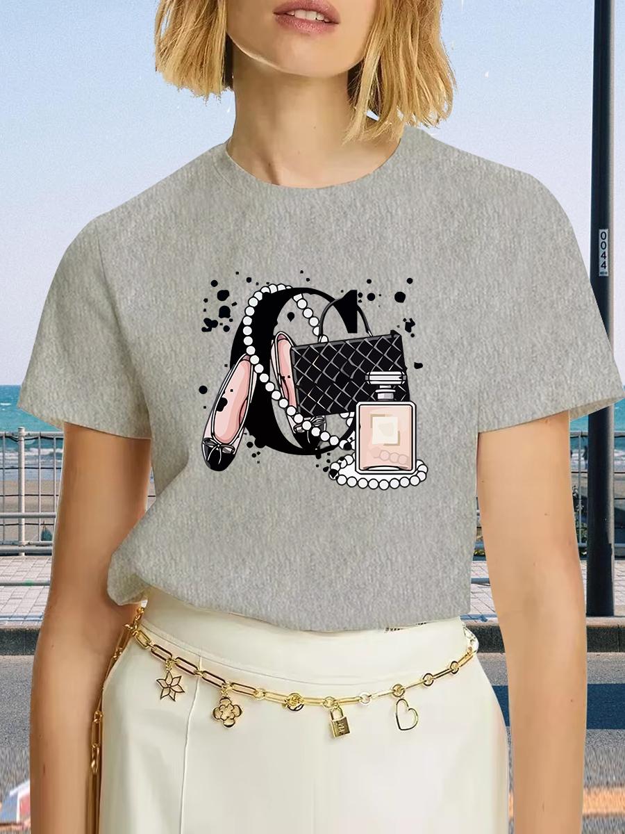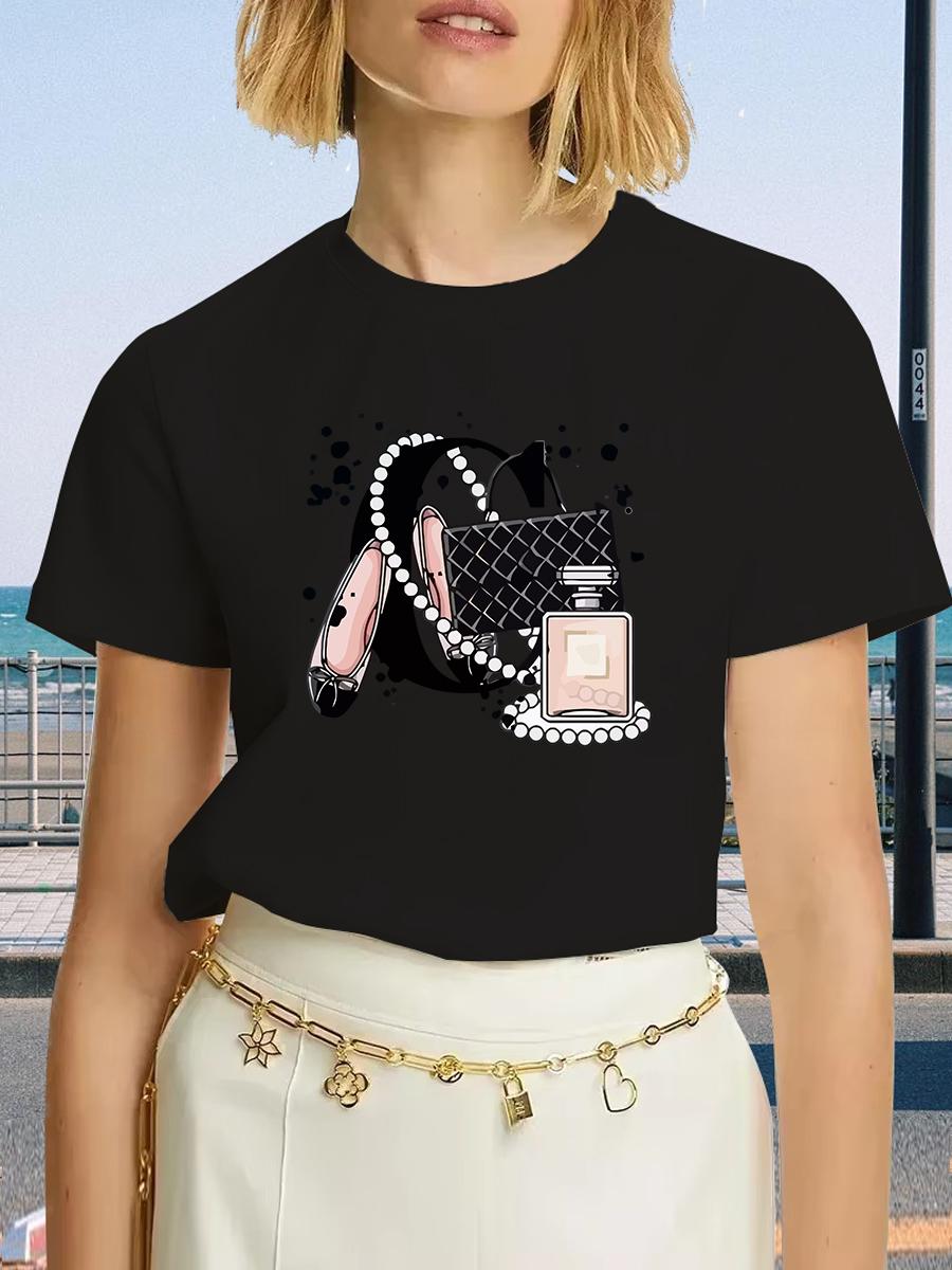 Женская футболка, летняя модная женская сумка, напечатанная женская футболка, повседневная женская одежда с коротким рукавом, белая футболка S