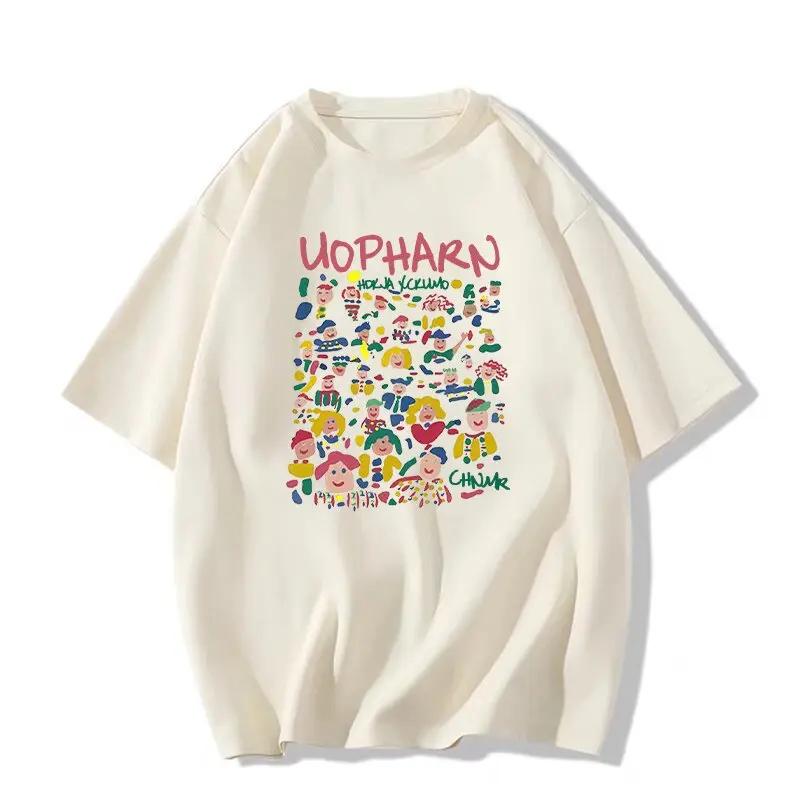 2025 Новая корейская летняя футболка из чистого хлопка с коротким рукавом, женская милая забавная повседневная футболка свободного кроя, топ больших размеров S