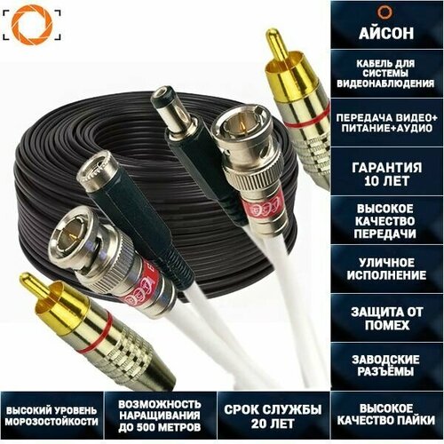 Кабель видеонаблюдения готовая бухта 60 метров видео + питание + аудио для AHD камер ISON