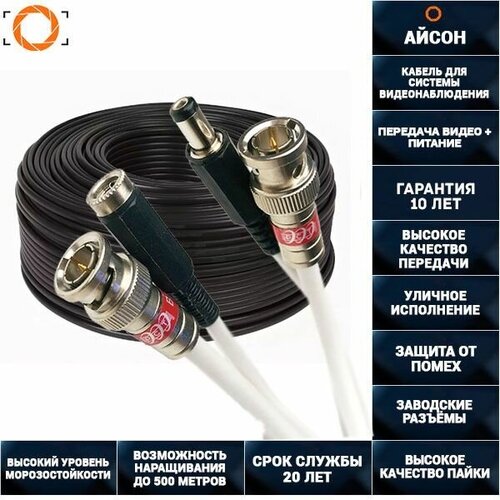 Кабель видеонаблюдения готовая бухта 70 метров видео + питание для AHD камер ISON